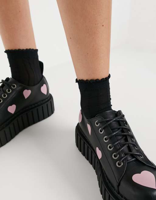 Lamoda chunky lace up creeper shoes with pink hearts in black ASOS