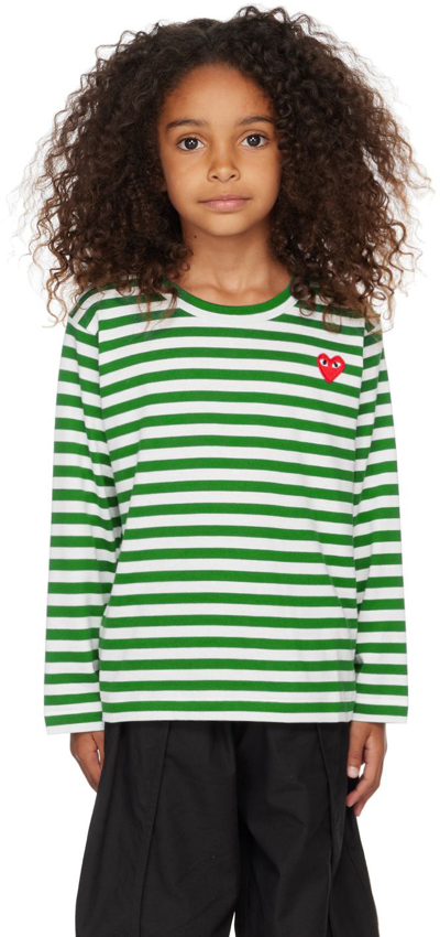 Comme Des Gar ons Play Kids Green White Striped Heart T shirt In