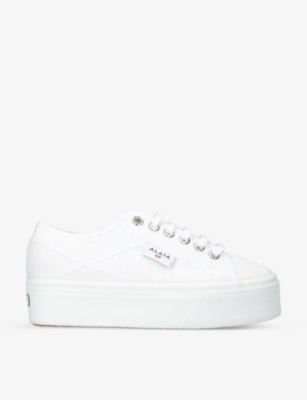AZZEDINE ALAIA Ala a x Superga flatform cotton canvas low top trainers