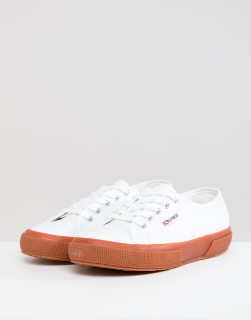 Superga 2750 Classic Canvas Trainers In White With Gum Sole
