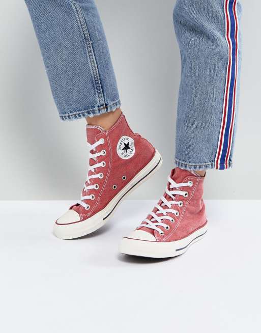 Converse Chuck Taylor All Star Hi Trainers In Stonewashed Red