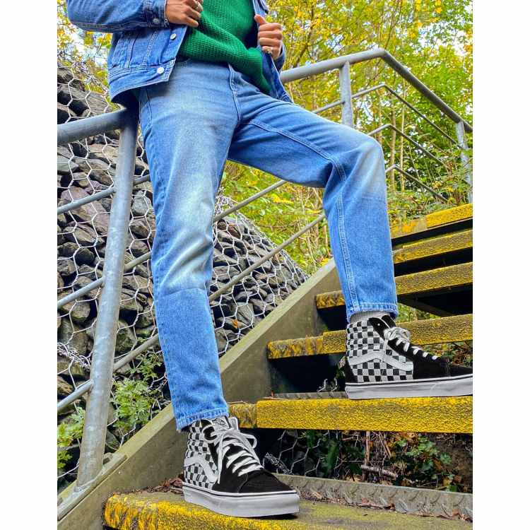 Vans sk8 hi clearance lite checkerboard, Vans SK8 Hi checkerboard trainers in black white ASOS clearance