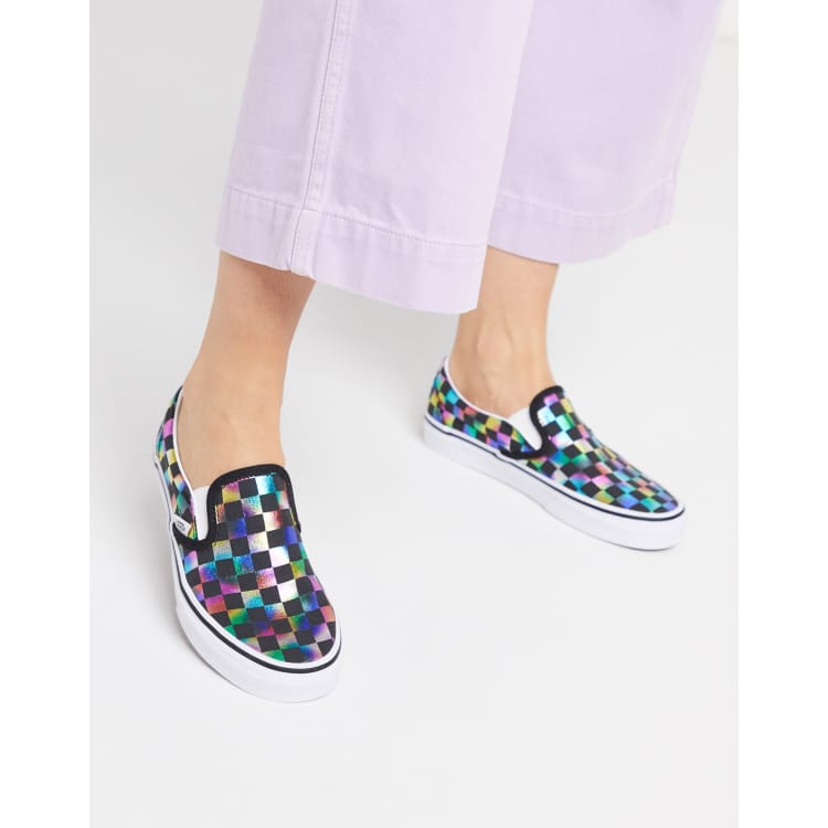 Vans Classic Slip On Iridescent Checkerboard Rainbow Chex NEW Mens Womens eBay