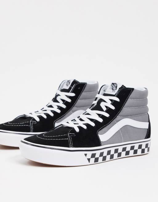 Vans ComfyCush SK8 Hi check tape trainer in black grey ASOS