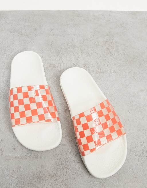 Vans checkerboard slides clearance red