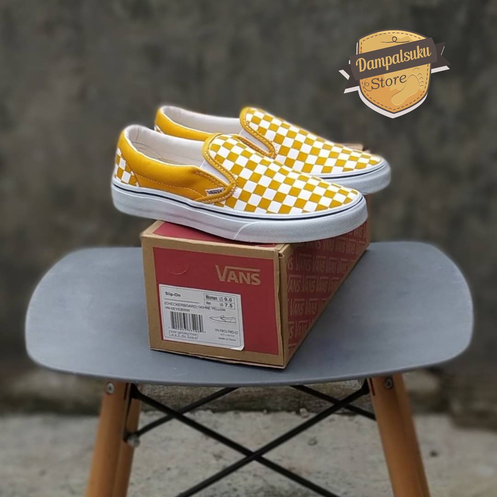 Jual Sepatu Vans Slip On Checkerboard Ochre Yellow Motif Catur