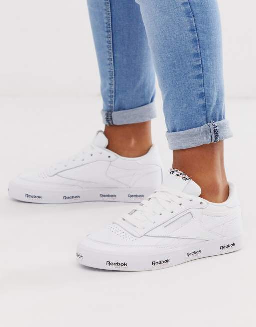 Reebok Revenge Plus Mu Trainers in white with logo taping