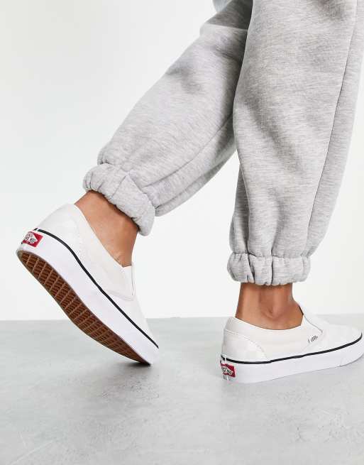 Vans slip on clearance looks, Vans Classic Slip On checkerboard trainers in light grey clearance