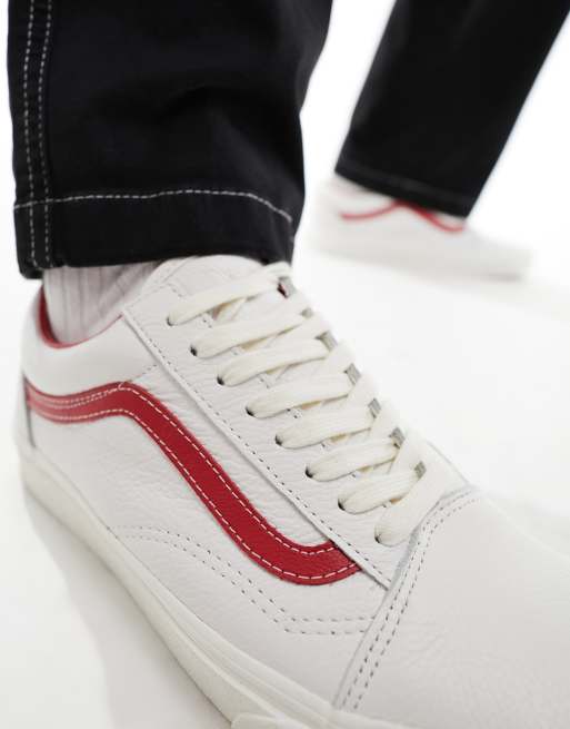 Vans Old Skool leather sneakers with red detail in white ASOS