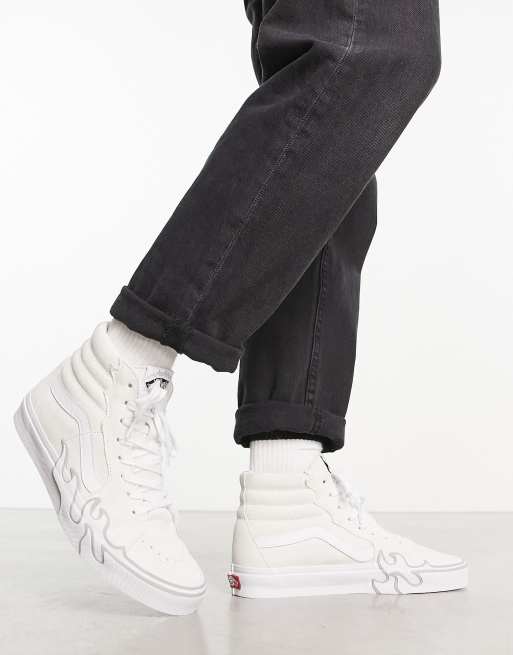 Vans sk8 hi clearance white flame, Vans Sk8 Hi Shoes flame skull black true white clearance