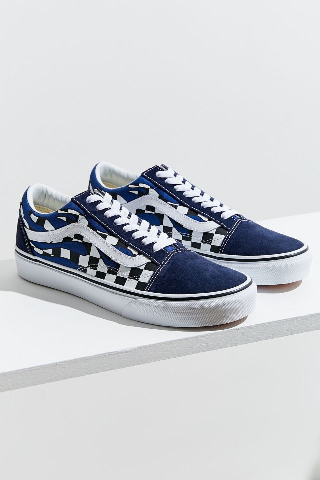 Blue checkered flame clearance vans, Vans Old Skool Checkerboard Flame Sneaker clearance