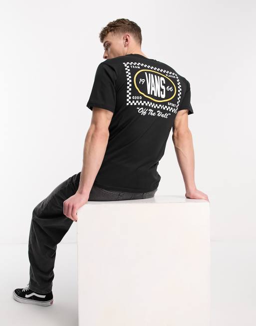 Vans off the clearance wall checkerboard shirt, Vans team player checkerboard back print t shirt in black ASOS clearance
