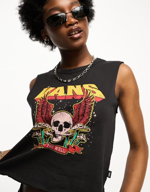Vans sleeveless t clearance shirt, Vans Summer Tour skull print vest in black ASOS clearance