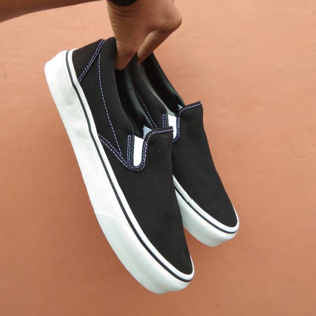 Sepatu Slip On Pria Hitam Polos Vans Slop Tanpa Tali Sneakers