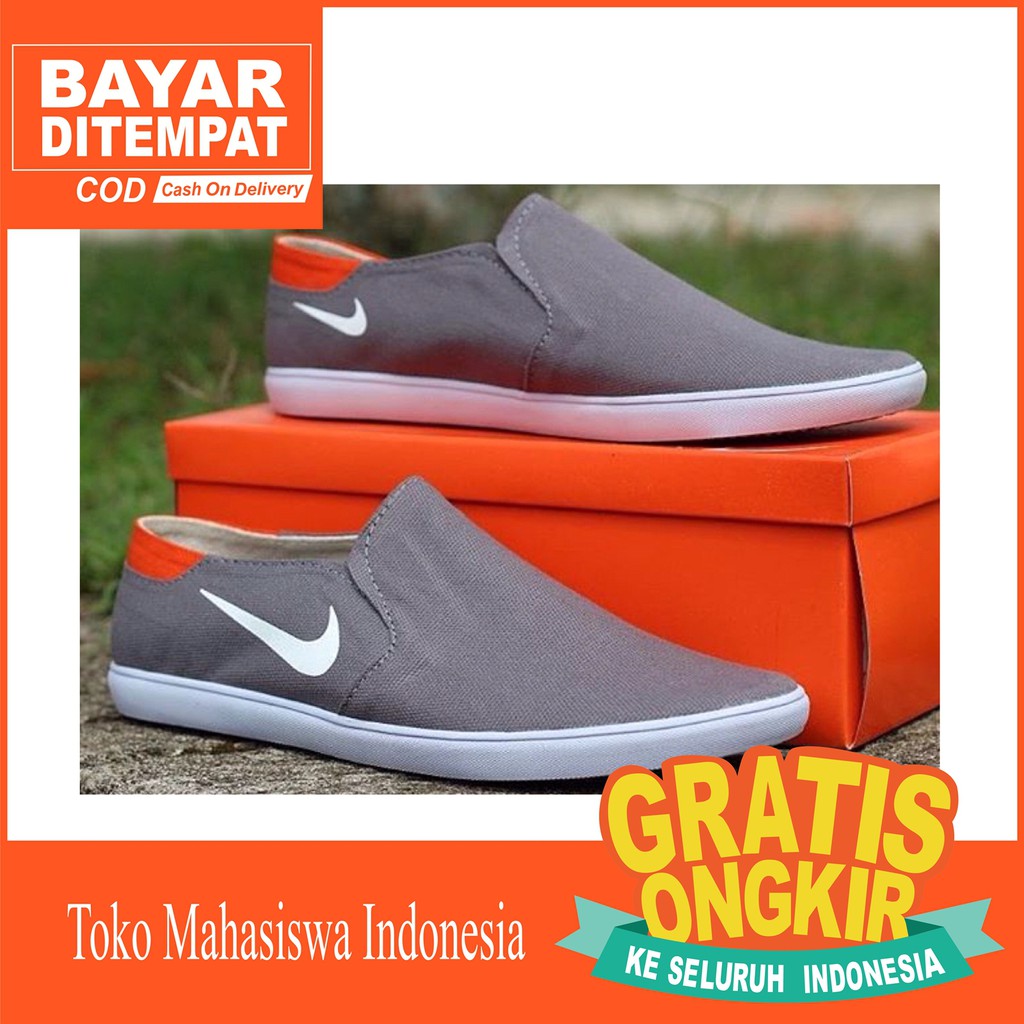 Jual Sepatu Slip On Nike Pria Casual Kualitas Premium Abu Abu