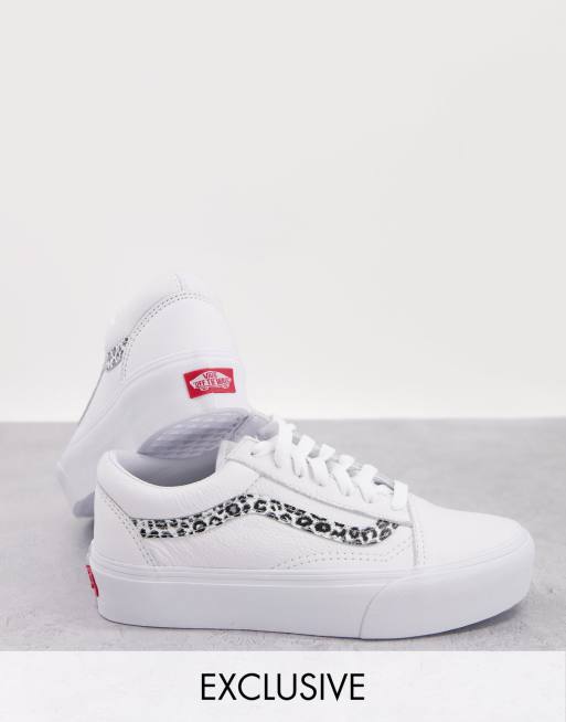 Vans Old Skool Platform Animal trainers in white Exclusive at ASOS