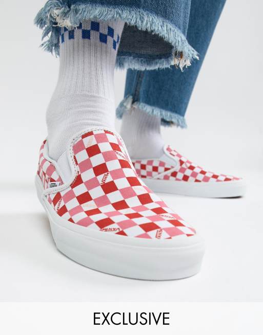 Vans Slip On checkerboard plimsolls in pink Exclusive at ASOS