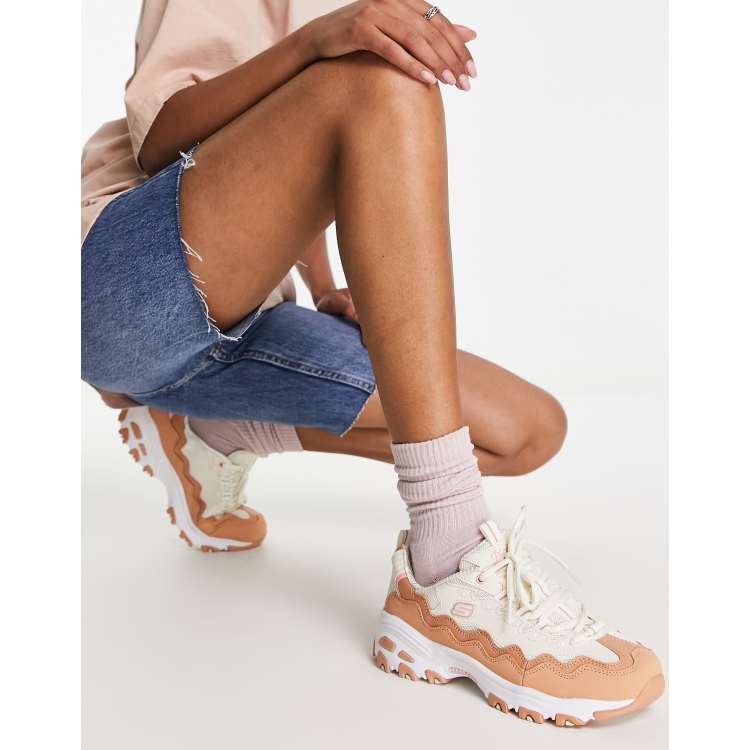 Skechers D Lites layered wavy trainers in white and tan leather ASOS