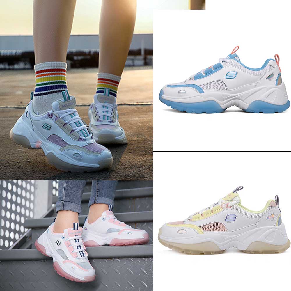Skechers clearance couple shoes, SKECHERS Sepatu Couple Panda Tiga Generasi Tebal Bawah Mesh Nyaman Bernapas Sepatu Olahraga Kasual 88888407 clearance