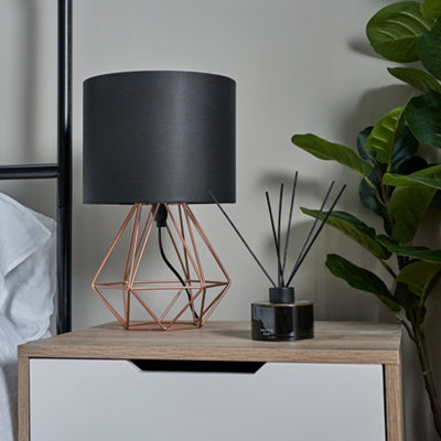ValueLights Pair of Copper Metal Bed Side Table Lamps With Black