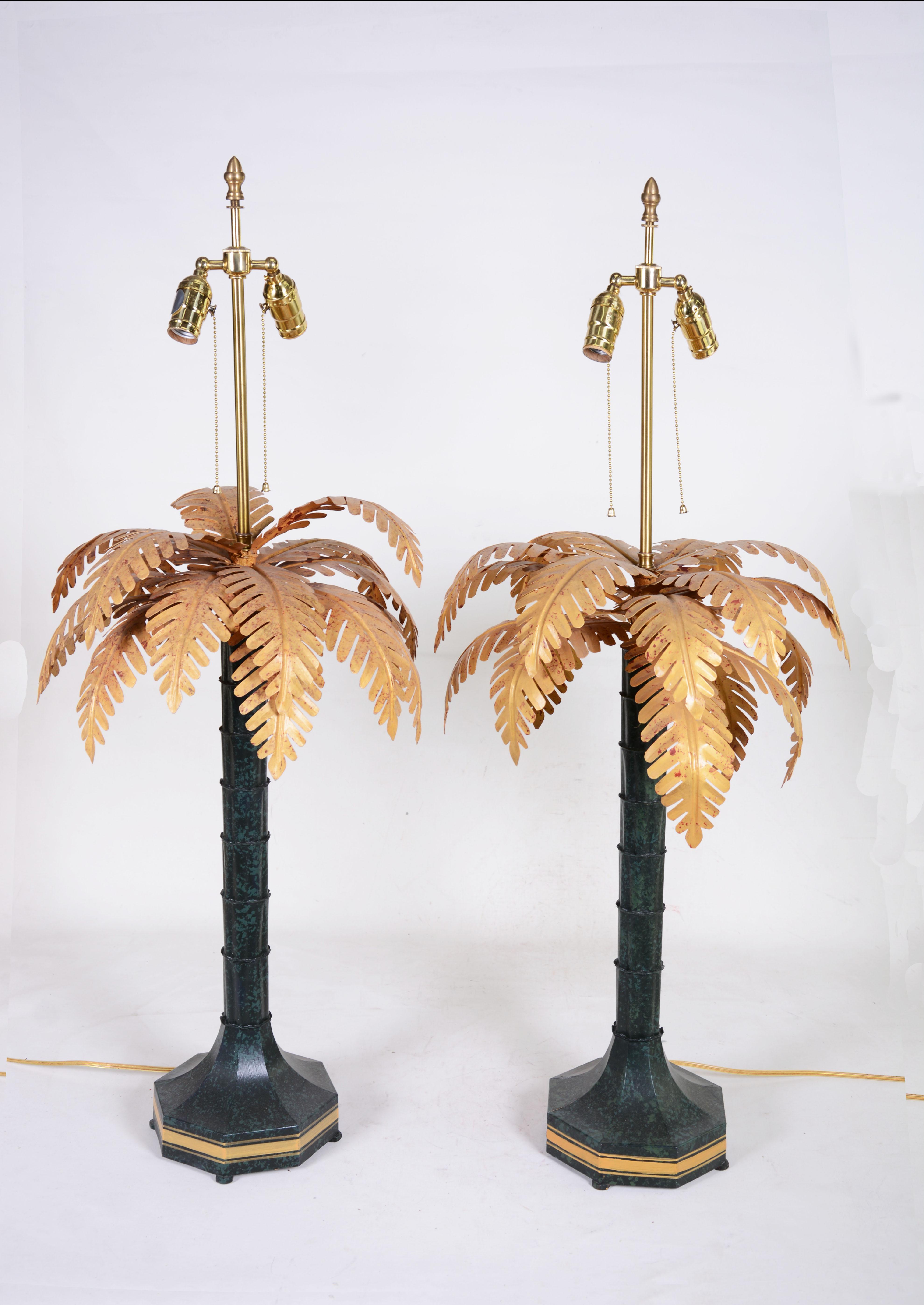 A Pair Vintage Design Handmade Golden Palm Tree Table Lamp