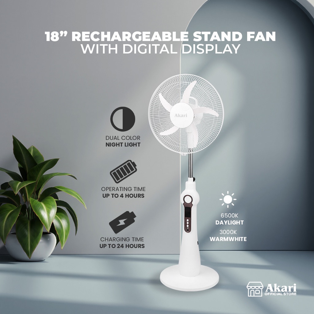 Akari 18 40W Rechargeable Stand Fan with Digital Display ARSF