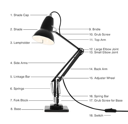 What are the components of an Anglepoise lamp called Anglepoise