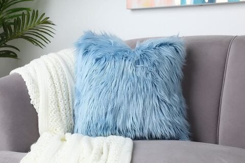 Blue faux fur clearance pillow, Boho 18x18 clearance