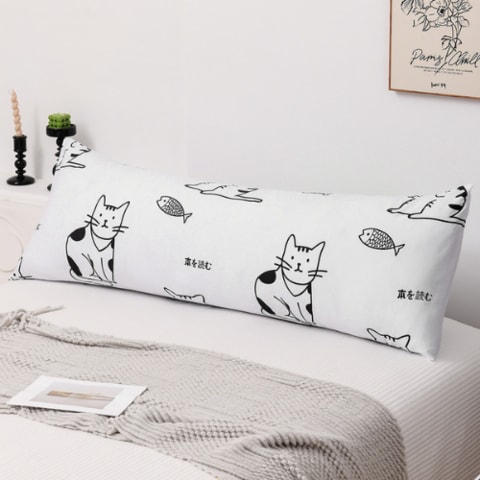 LUNA HOME 1 Piece Long Body Pillow Case Cute Cat Design White Color