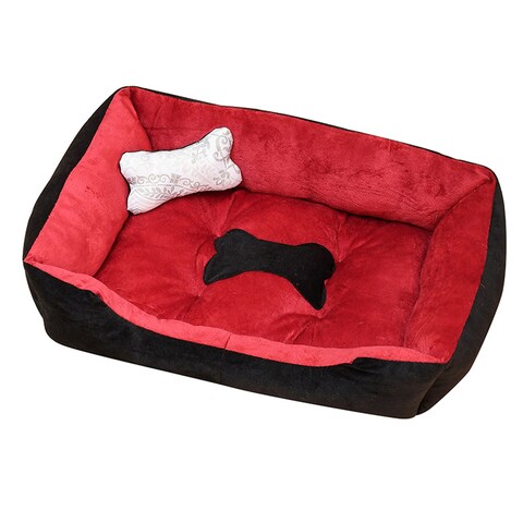 DEO KING Foldable Square Pet Bed With Pet Pillow Red Black 60 45 15cm