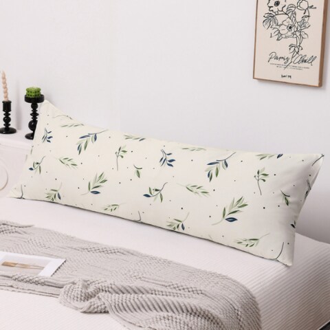LUNA HOME 1 Piece Long Body Pillow Case Small Green Leaves Design