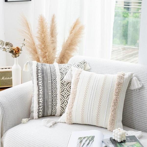 Bohemian White Tassel Sofa Cushion Pillow Cover