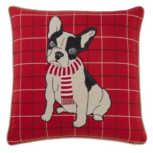 Saro Lifestyle Plaid Christmas French Bull Dog Pillow Poly