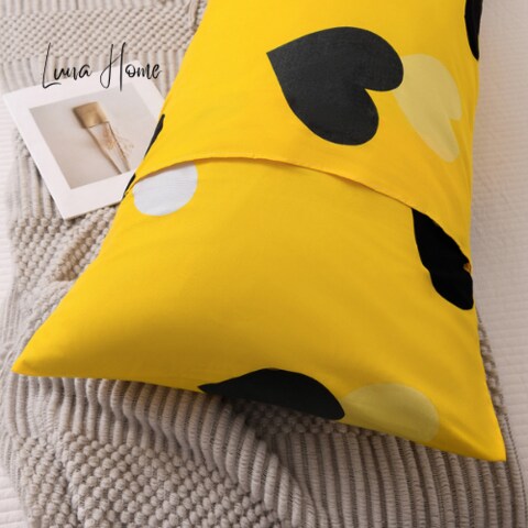 LUNA HOME 1 Piece Long Body Pillow Case Yellow Color with Hearts Design