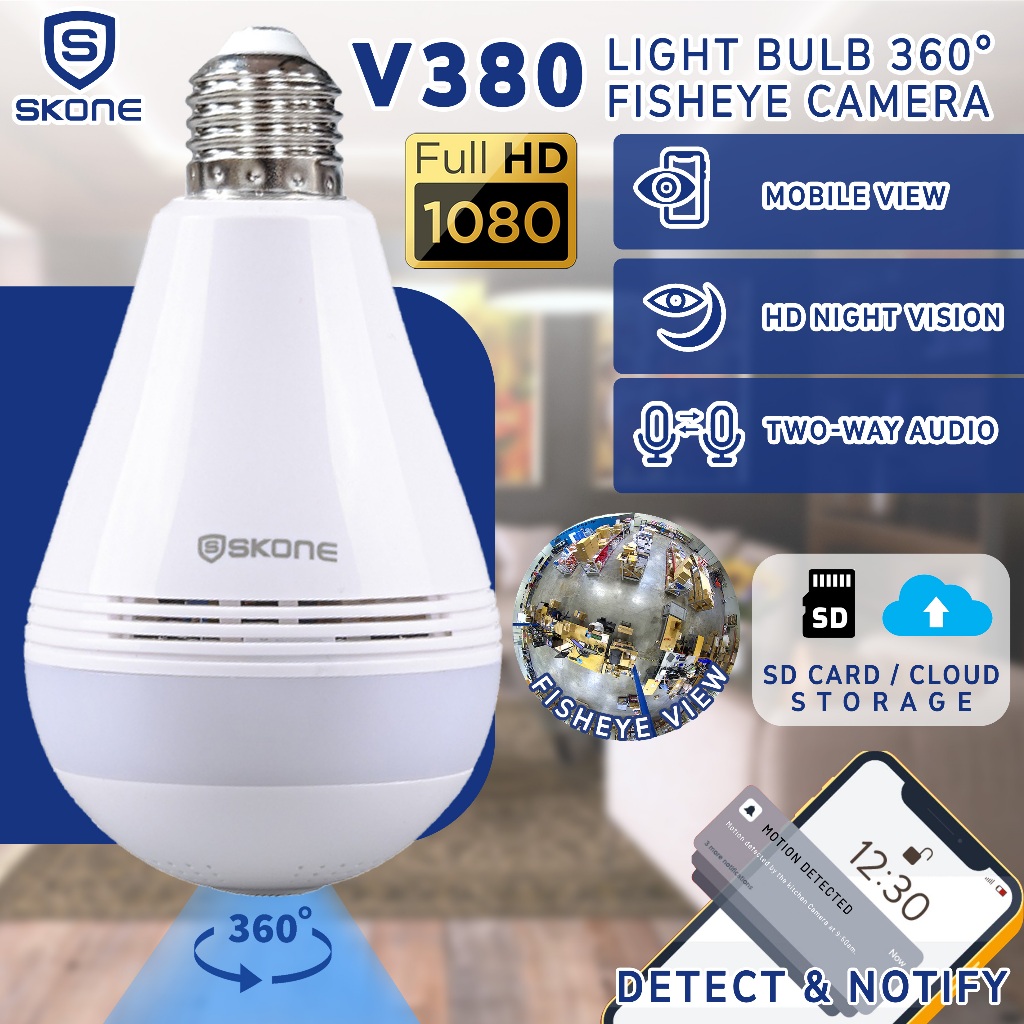 Skone clearance bulb camera, Bulb V2 Round Type V380 CCTV Bulb Camera 360 Panoramic 1080p Wireless with Night Vision SKONE clearance