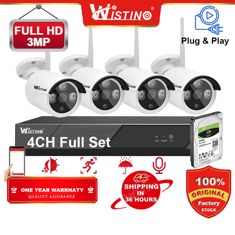 Wistino CCTV Camera Full Set 4CH Audio FHD 3MP Outdoor Wifi NVR