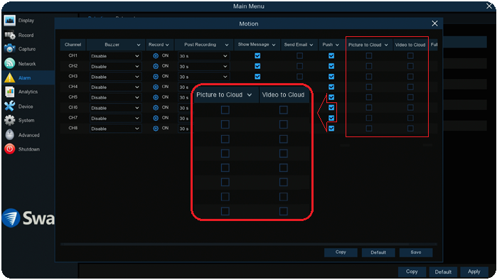 Setup Cloud storage to V8 NVW recorders Swann