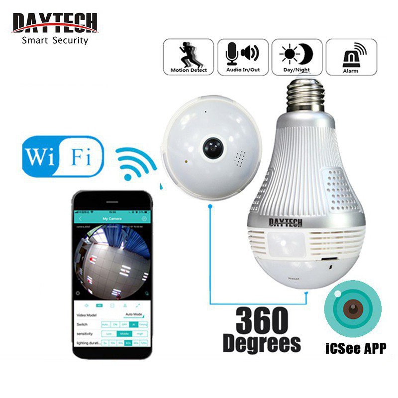 Daytech clearance camera app, Daytech WIFI Bulb Camera Model BULB01 360 Panoramic IP Camera 3MP clearance