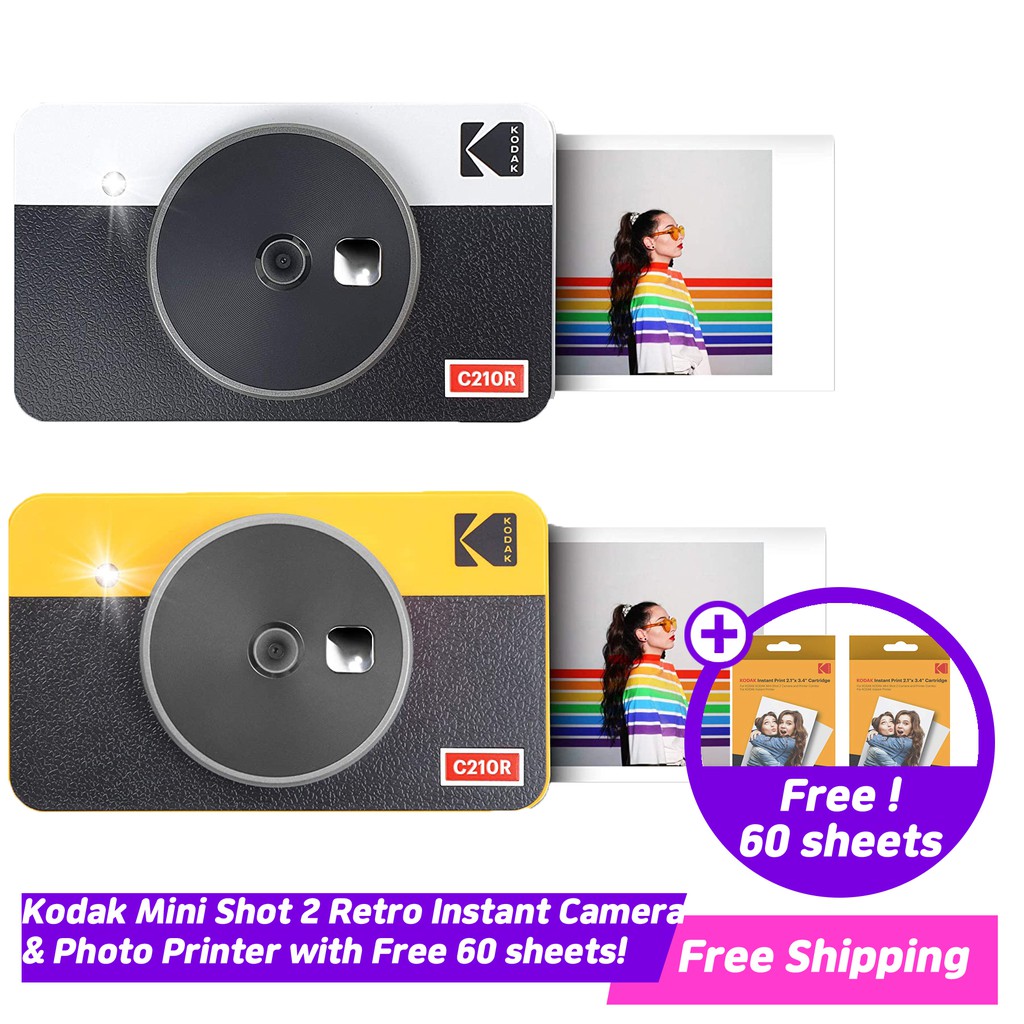Kodak Mini Shot 2 Retro 2 in 1 Portable Instant Camera Photo Printer Yellow 60 Sheets Bundle