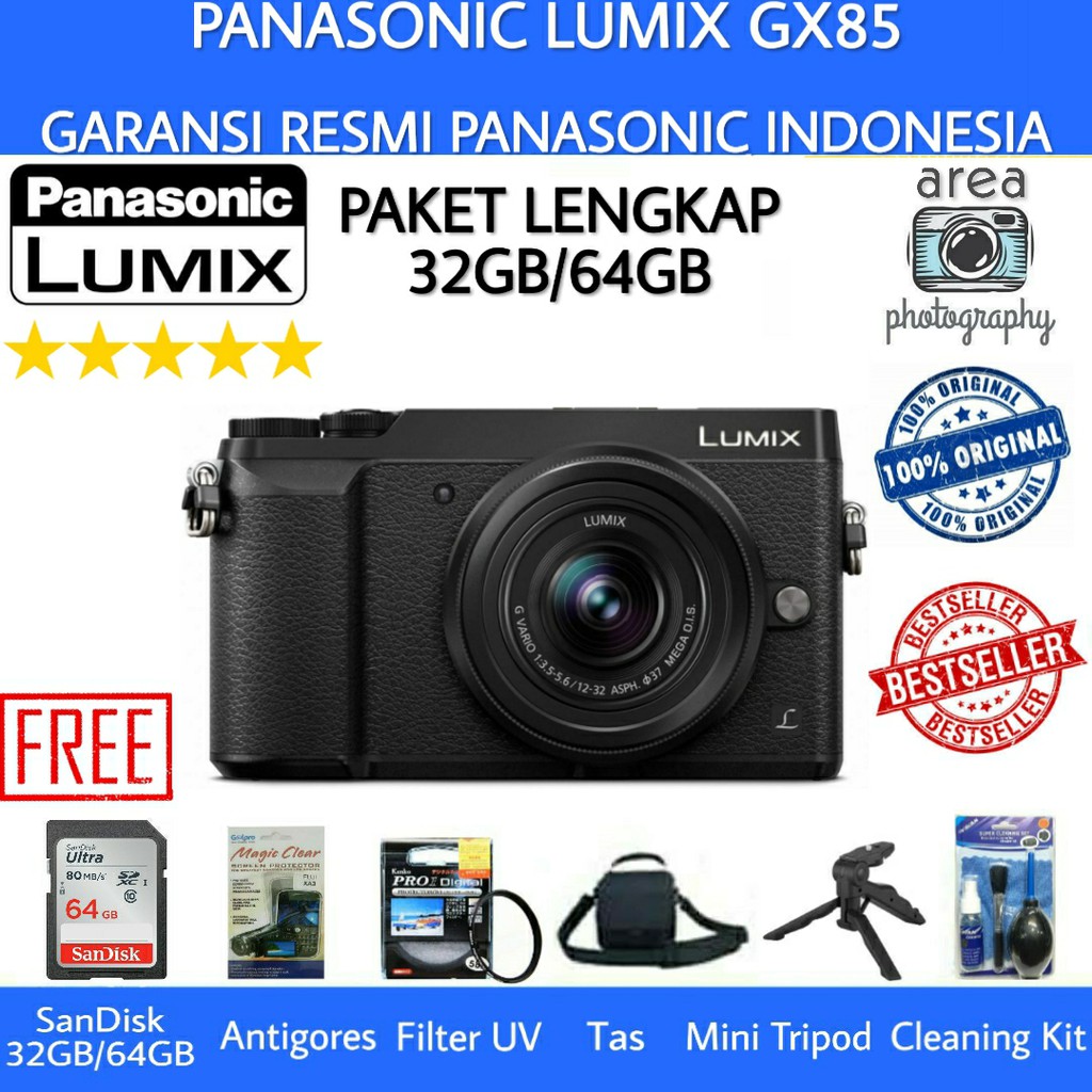 PANASONIC LUMIX GX85 KIT 12 32MM MEGA OIS WIFI ORIGINAL PAKET LENGKAP 32GB 64GB
