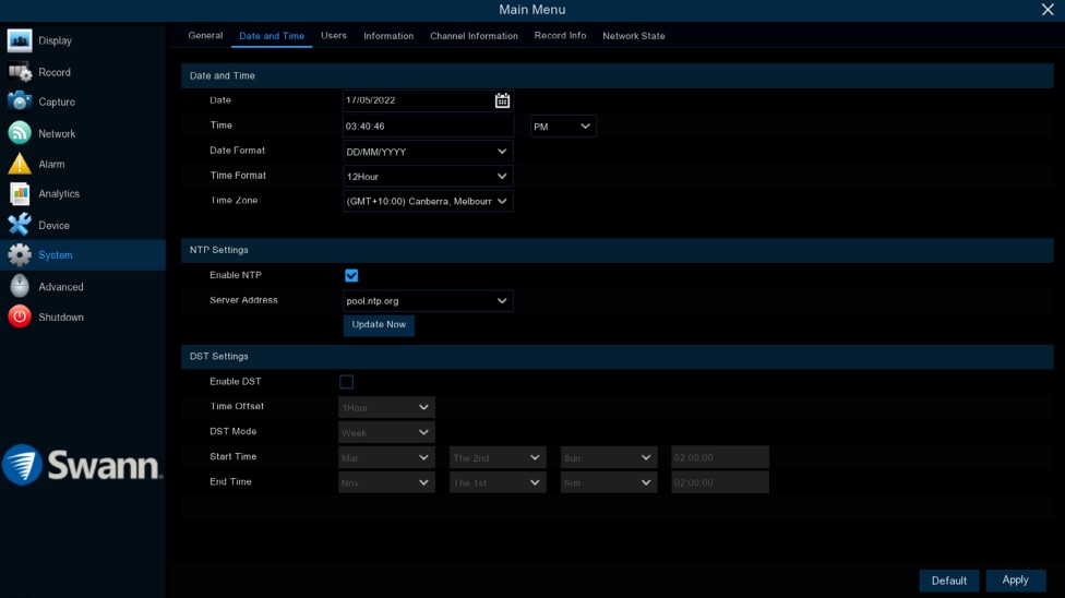 How to Set the Correct Date and Time in V8 Swann Security DVR