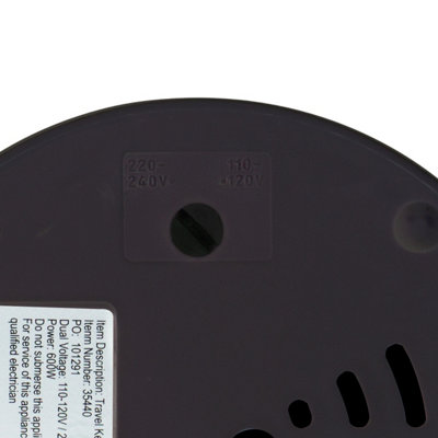 Quest Black Travel Kettle with 2 Cups Portable Lightweight Dual Voltage for Worldwide Use Safety Protection Use in Carvans Camp Sites and