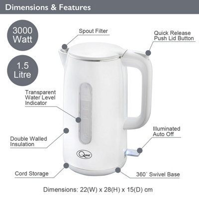 Quest clearance illuminated kettle, Quest Jug Kettle 1.5L Fast Boil White Silver clearance