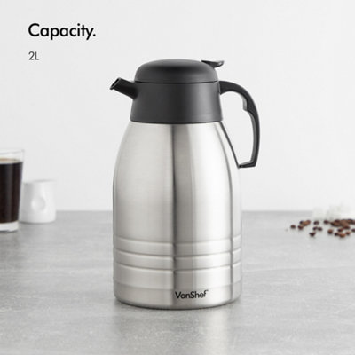 VonShef 2 Litre Insulated Vacuum Jug Flask Double Walled