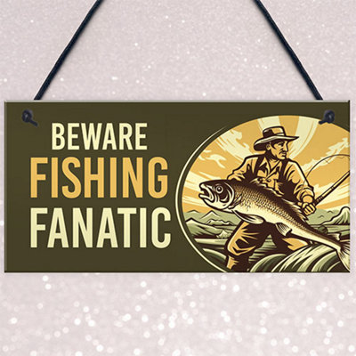 Red Ocean Beware Fishing Finatic Sign Funny Fishing Sign Gifts