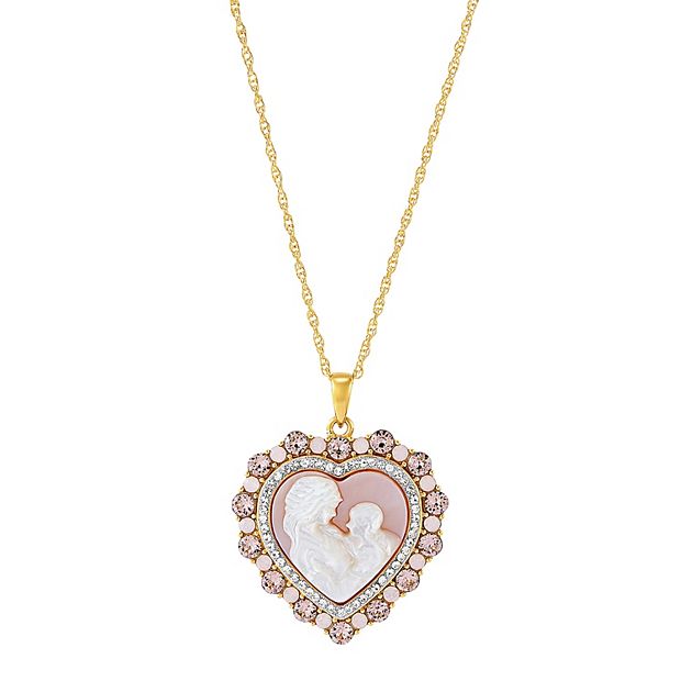18k Gold Over Silver Mother Of Pearl Motherly Love Cameo Pendant