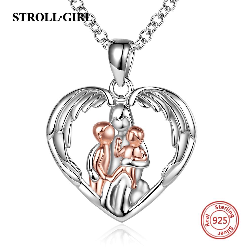 Mom Hugged Two Kids Baby Pendant Chain 925 Sterling Silver Heart