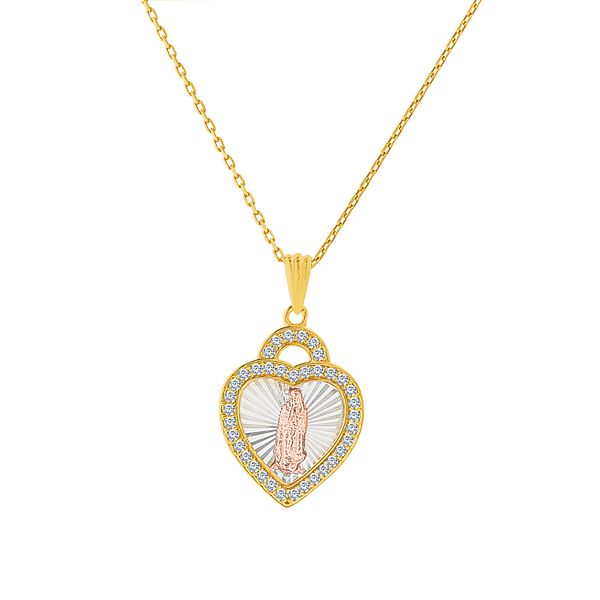 Gold Plated Virgin Mary Heart CZ Pendant Necklace 24 Virgen