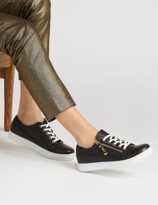 Smart black leather clearance trainers, Leather Lace Detail Trainers Jones Bootmaker M S clearance
