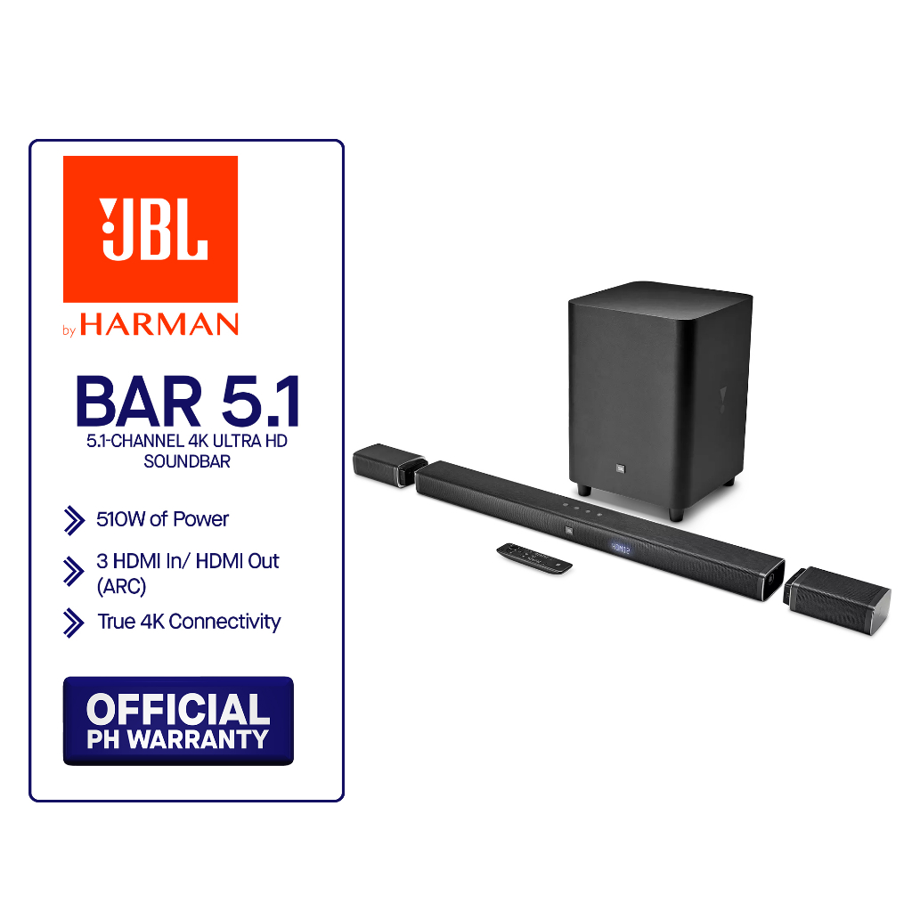 Jbl 5.1 channel 4k ultra hd clearance soundbar with true wireless surround speakers, JBL Bar 5.1 4K Ultra HD Soundbar with Surround Speakers JBL PH clearance